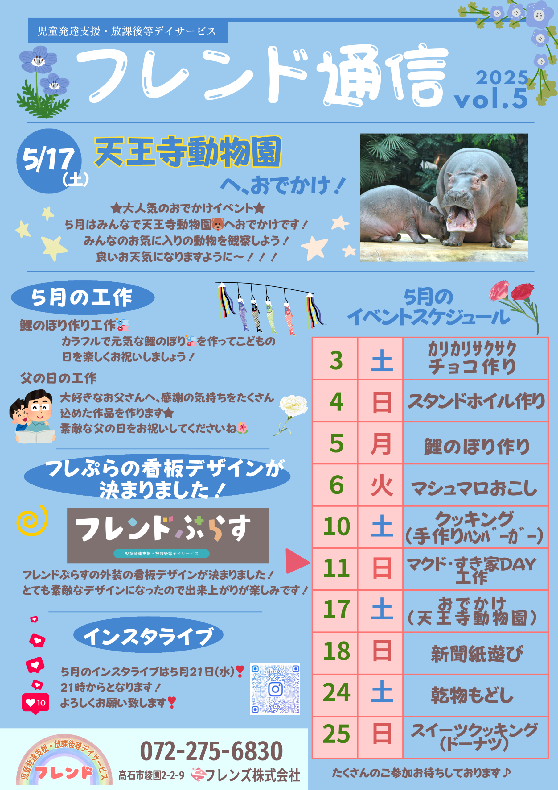 5月もみんなで楽しめる企画を準備中で、17日は天王寺動物園へのお出かけを予定しています!!